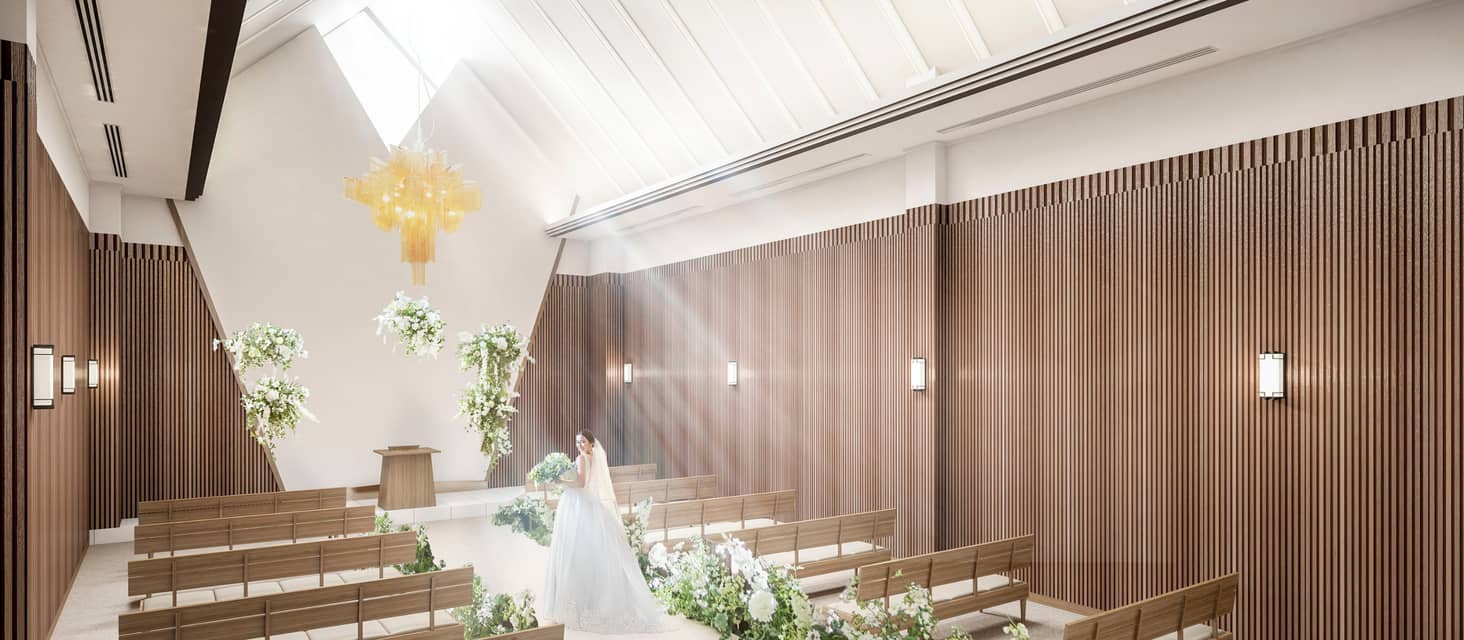 《2月OPEN・最大200万特典》光が溢れ緑を感じるNEWチャペルで入場体験